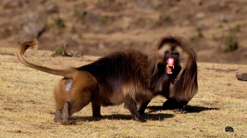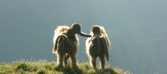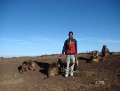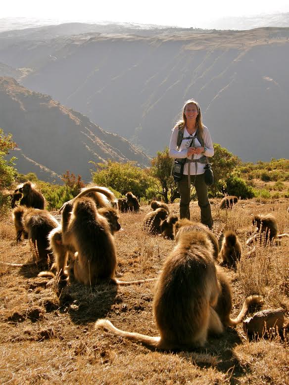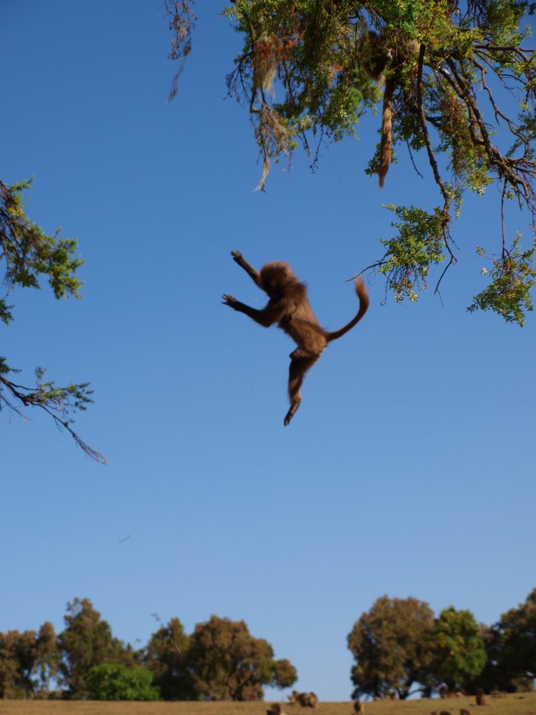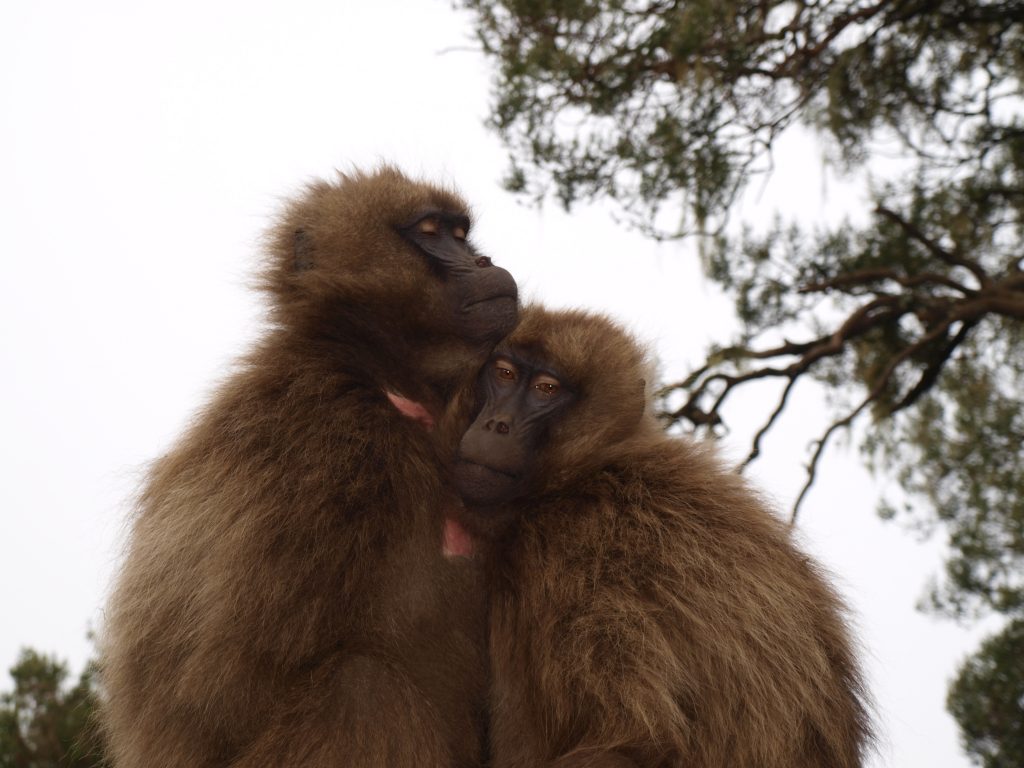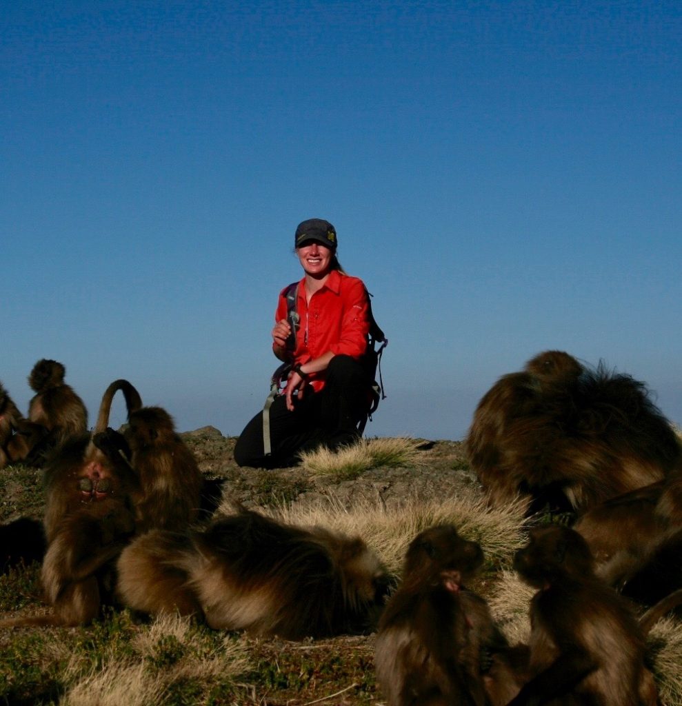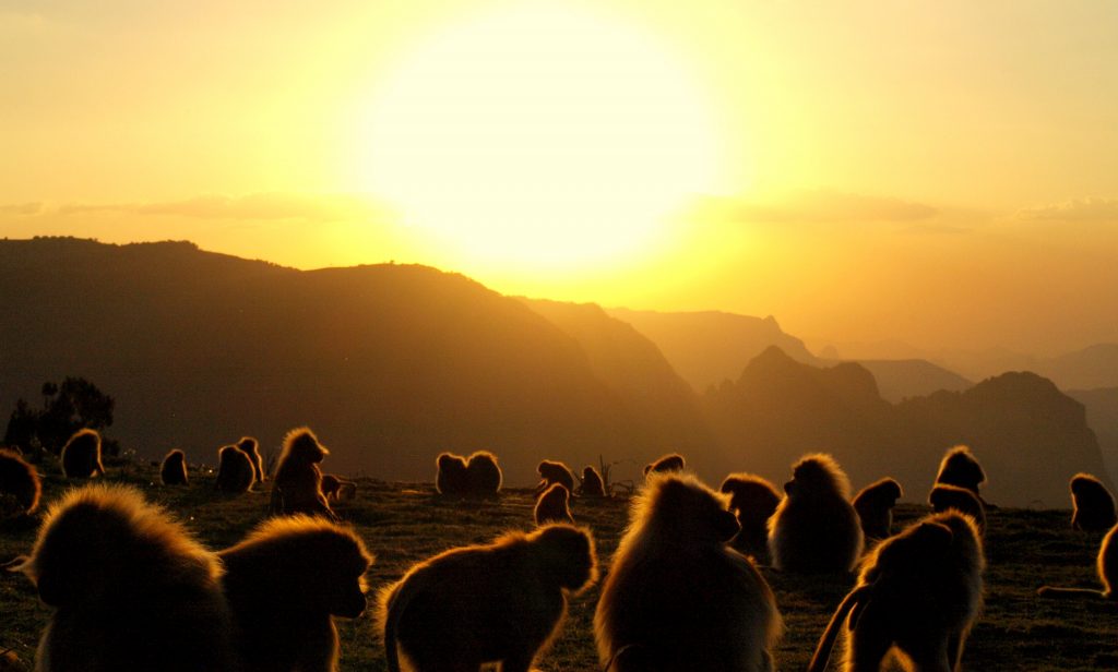 Studying geladas is hard work, but if you enjoy the mountains, hiking and keeping up with monkey drama, then the Simien Mountains is the best place to be! Each morning after a cup of freshly brewed Ethiopian coffee, we set out early to find our study groups and spend the day collecting various kinds of data (hormones, isotope, urine, DNA, focal observations, census, vocal recordings to name a few) from them. The terrain is spectacular, but can be exhausting when chasing geladas up and down the mountainside. Working at high altitudes also means less oxygen for us humans, so it can be a little challenging at times. The geladas can make it easy for us sometimes by grazing and socializing for long hours on the plateaus!