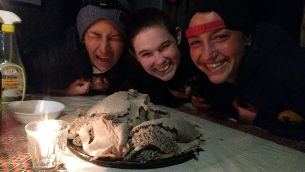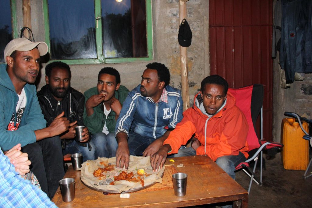 At the end of the day we return to camp to process samples, log our data for the day, and prepare equipment for next day’s data collection. After catching up on the monkey soap opera, we set about preparing dinner and watching whatever show is available at our camp theatre, and maybe even pausing to sit on the cliff together listening to music as we watch the most spectacular sunset. We also have gibshas (a traditional ethiopian party) every now and then where everyone from our local community gets together to shoulder dance and enjoy some of the best injera,doro wot and tibs in town!