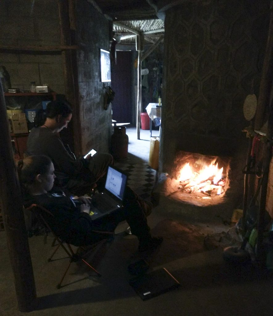 Our stone hut is powered by solar panels and is equipped with a basic lab for prepping hormone, DNA, and parasite samples, a computer station for entering data and performing data analyses, a fireplace for cool nights, a propane-powered stove and oven, a propane-powered shower shed for hot showers, and an ever growing library. We also have access to our very own semi-private lookout for sundowners in the evening!