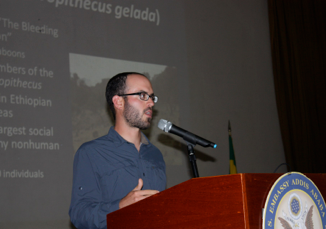 Our field team regularly engages with tourists, journalists, guides, students, NGOs, and government officials in Ethiopia and the US to communicate our science and conservation work. Our team members have participated in Conservation Camps run by the Simien Lodge for students living in and around the national park, represented the SMGRP at the Ministry of Science and Technology in Addis Ababa, given presentations about gelada research and conservation on Ethiopian National Television, and done interactive outreach events with high school and university students in Ethiopia and the US.